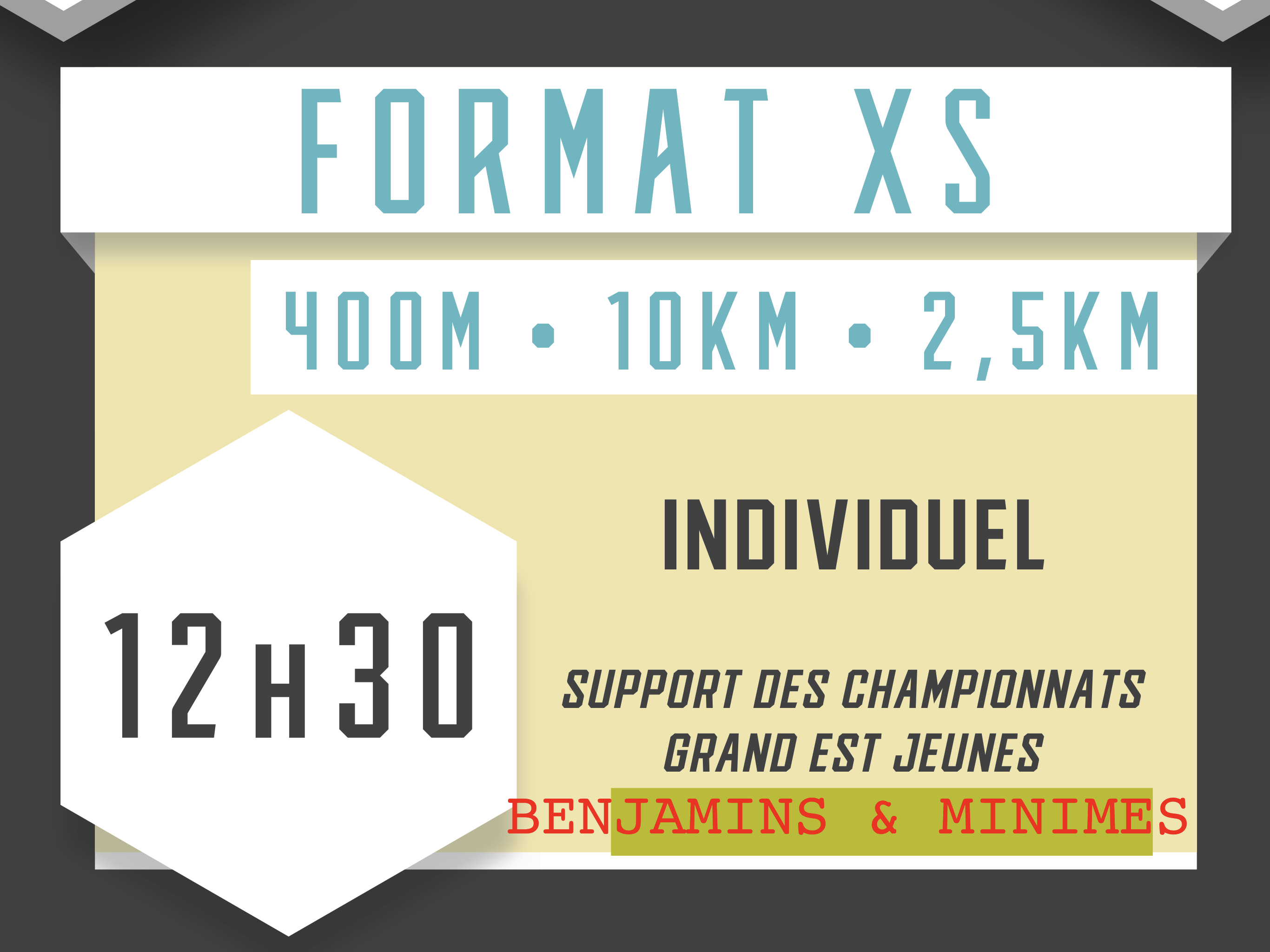 Erratum: le Championnat Grand Est est ouvert aux benjamins (2007-2006) et minimes (2005-2004) sur le format XS